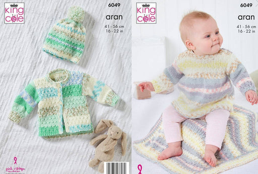 Knitting Pattern Babies Dress, Jacket, Hat & Blanket in King Cole Cosy Love Aran 6049
