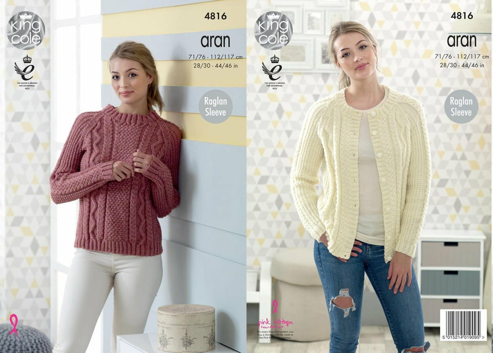 Knitting Pattern Ladies Sweater & Cardigan in King Cole Fashion Aran 4816
