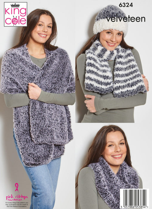 Knitting Pattern Ladies Accessories Knitted in King Cole Velveteen 6324
